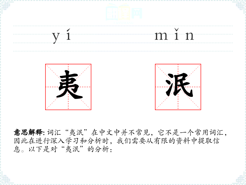 词汇“夷泯”在中文中并不常见,它不是一个常用词汇,因此在进行深入学*和分析时,我们需要从有限的资料中提取信息。以下是对“夷泯”的分析: