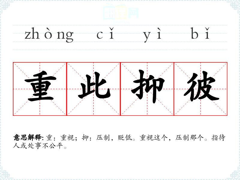重:重视;抑:压制,贬低。重视这个,压制那个。指待人或处事不公平。