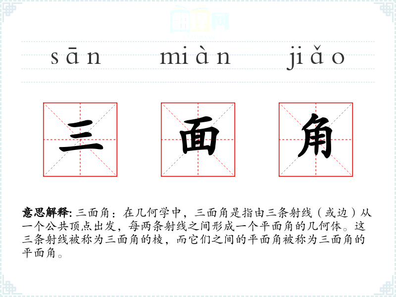 "三面角"的意思解释、三面角是什么意思由翻译网汉语词典查词提供。