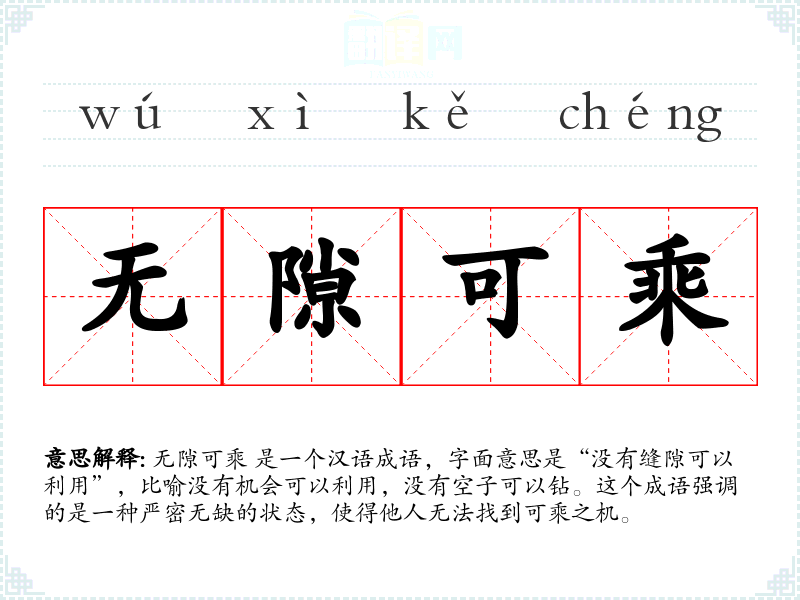 "无隙可乘"的意思解释、无隙可乘是什么意思由翻译网汉语词典查词提供。