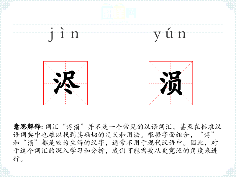 词汇“浕涢”并不是一个常见的汉语词汇,甚至在标准汉语词典中也难以找到其确切的定义和用法。根据字面组合,“浕”和“涢”都是较为生僻的汉字,通常不用于现代汉语中。因此,对于这个词汇的深入学习和分析,我们可能需要从更宽泛的角度来进行。