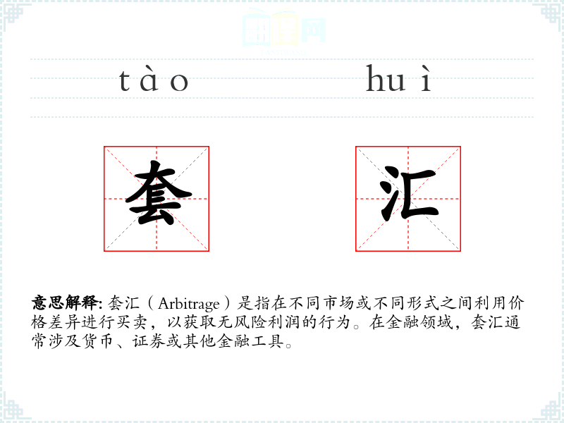 - 反义词:无(套汇本身是一种利用差异的行为,没有直接的反义词)