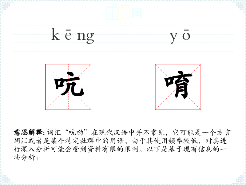 词汇“吭哟”在现代汉语中并不常见,它可能是一个方言词汇或者是某个特定社群中的用语。由于其使用频率较低,对其进行深入分析可能会受到资料有限的限制。以下是基于现有信息的一些分析: