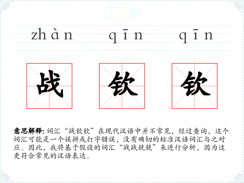 词汇“战钦钦”在现代汉语中并不常见,经过查询,这个词汇可能是一个误拼或打字错误,没有确切的标准汉语词汇与之对应。因此,我将基于假设的词汇“战战兢兢”来进行分析,因为这更符合常见的汉语表达。