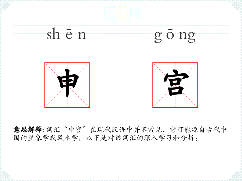 词汇“申宫”在现代汉语中并不常见,它可能源自古代*的星象学或风水学。以下是对该词汇的深入学和分析: