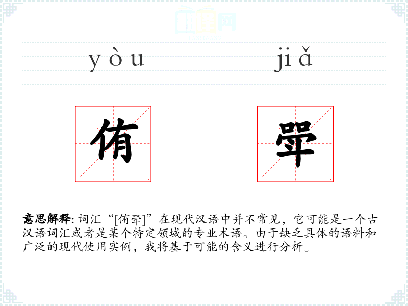 词汇“[侑斝]”在现代汉语中并不常见,它可能是一个古汉语词汇或者是某个特定领域的专业术语。由于缺乏具体的语料和广泛的现代使用实例,我将基于可能的含义进行分析。