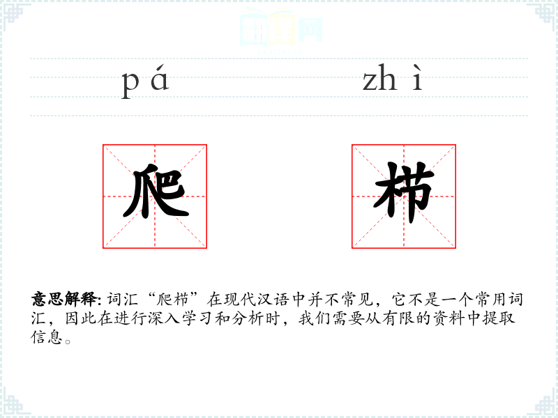 词汇“爬栉”在现代汉语中并不常见,它不是一个常用词汇,因此在进行深入学习和分析时,我们需要从有限的资料中提取信息。