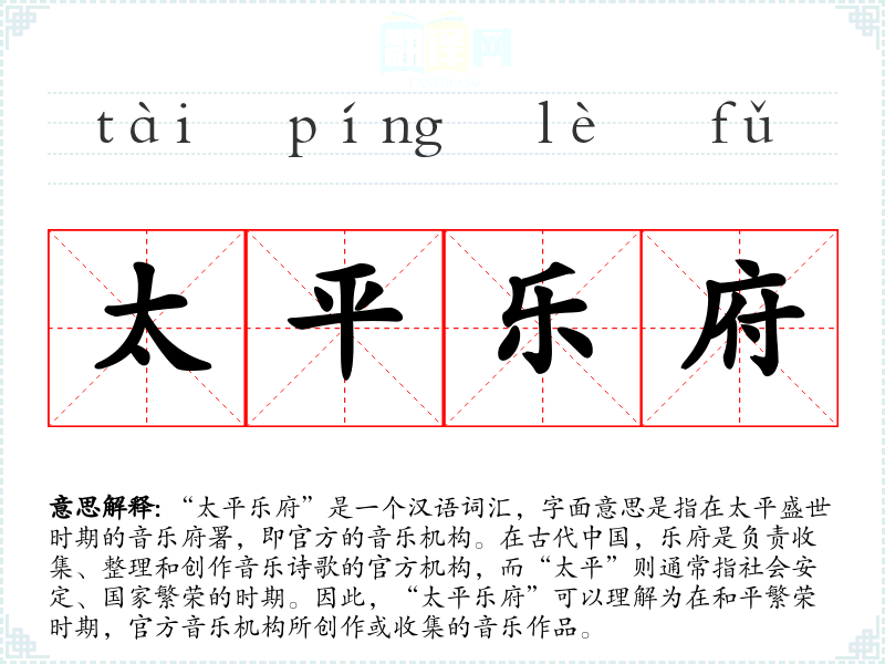 在**文化中,“太平乐府”代表了和平与繁荣的理想状态。它不仅是一种音乐形式,也是一种文化象征,反映了古人对和谐社会的向往。在社会背景中,这个词汇可能被用来讨论古代社会的文化成就和艺术发展。