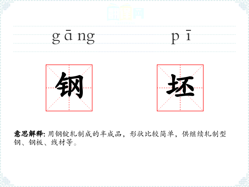 用钢锭轧制成的半成品,形状比较简单,供继续轧制型钢、钢板、线材等。