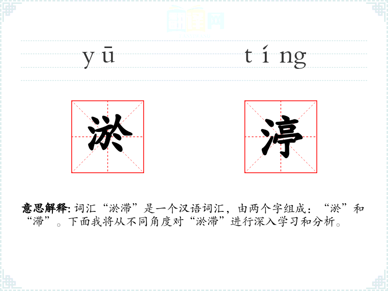 词汇“淤滞”是一个汉语词汇,由两个字组成:“淤”和“滞”。下面我将从不同角度对“淤滞”进行深入学*和分析。