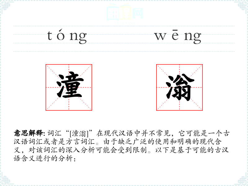 词汇“[潼滃]”在现代汉语中并不常见,它可能是一个古汉语词汇或者是方言词汇。由于缺乏广泛的使用和明确的现代含义,对该词汇的深入分析可能会受到限制。以下是基于可能的古汉语含义进行的分析: