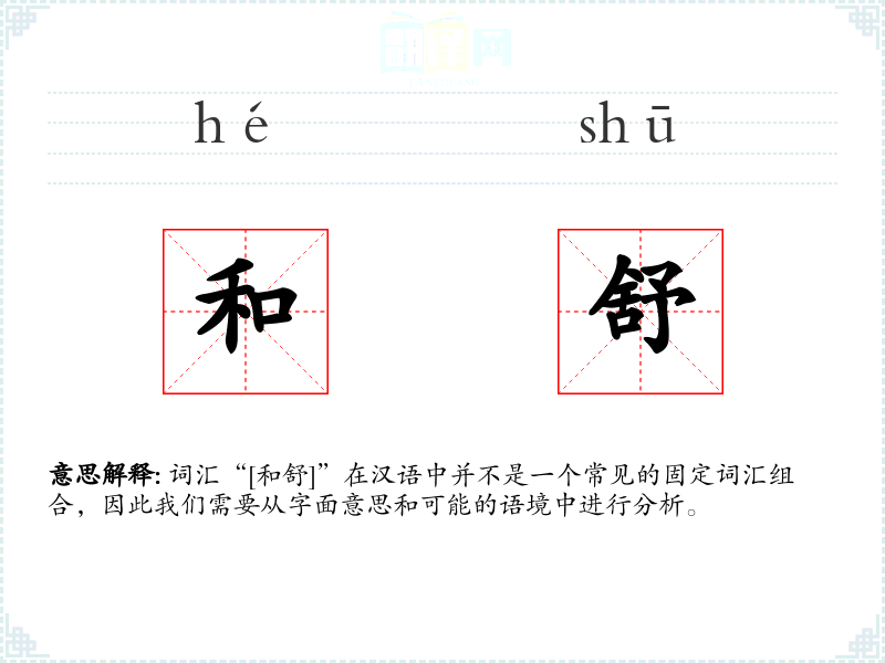 词汇“[和舒]”在汉语中并不是一个常见的固定词汇组合,因此我们需要从字面意思和可能的语境中进行分析。