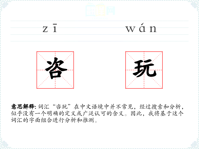 词汇“咨玩”在中文语境中并不常见,经过搜索和分析,似乎没有一个明确的定义或广泛认可的含义。因此,我将基于这个词汇的字面组合进行分析和推测。