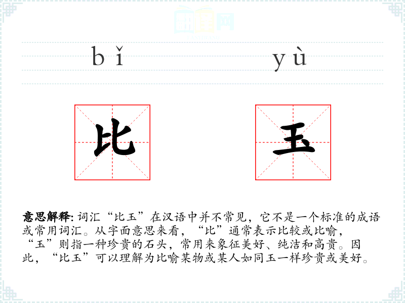 - 专业领域:在宝石学或艺术领域,可能会用“比玉”来形容某些材料的珍贵程度。