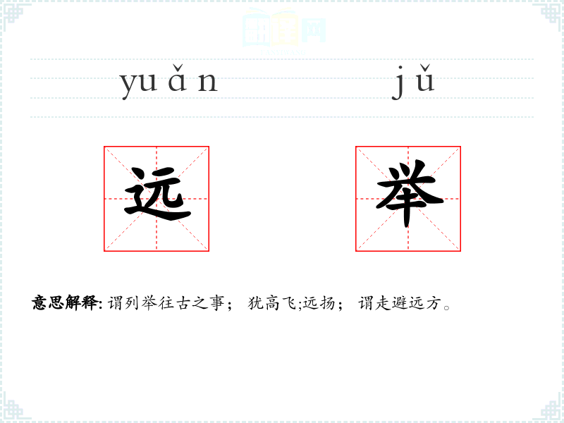 谓列举往古之事; 犹高飞;远扬; 谓走避远方。