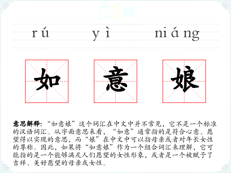 ※ "如意娘"的意思解释、如意娘是什么意思由翻译网汉语词典查词提供。