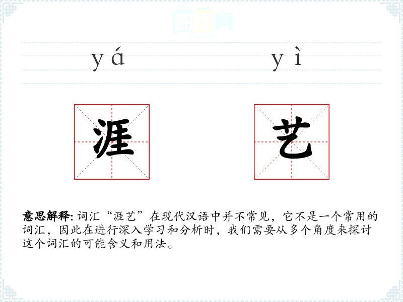 词汇“涯艺”在现代汉语中并不常见,它不是一个常用的词汇,因此在进行深入学习和分析时,我们需要从多个角度来探讨这个词汇的可能含义和用法。