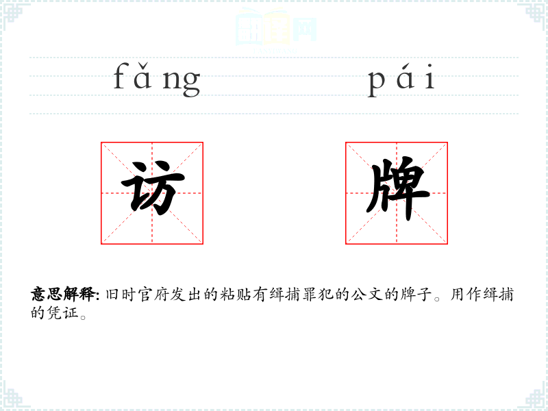 旧时官府发出的粘贴有缉捕罪犯的公文的牌子。用作缉捕的凭证。