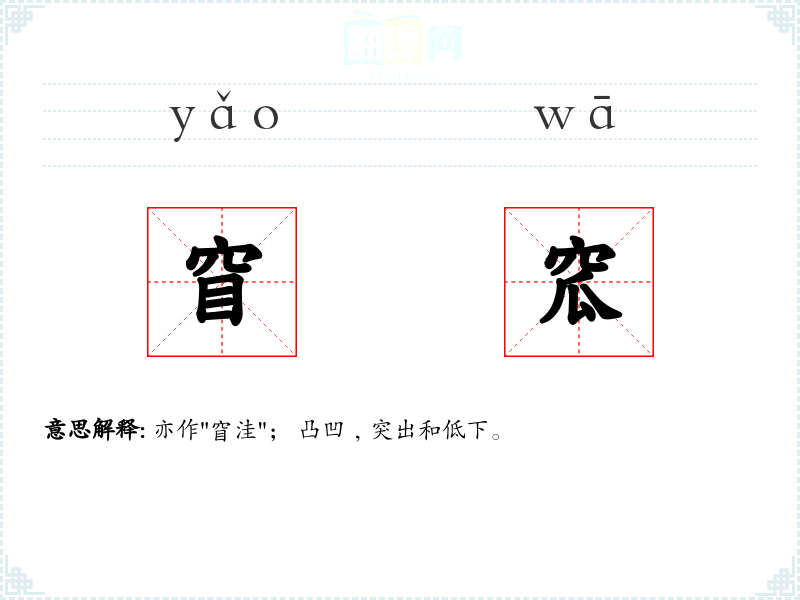 亦作"窅洼"; 凸凹﹐突出和低下。