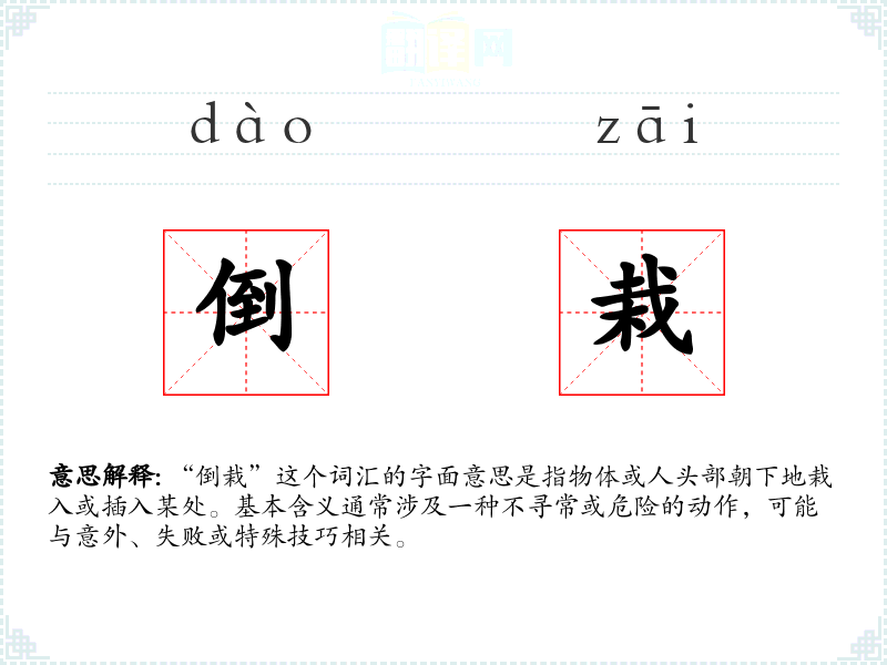 - 文学:在文学作品中,“倒栽”可能用来形容戏剧性的坠落或意外,增加故事的紧张感或幽默感。