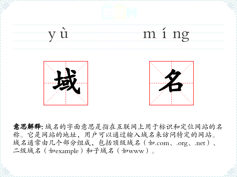 - 反义词:无直接反义词,但可以与“IP地址”对比,后者是域名的数字形式。