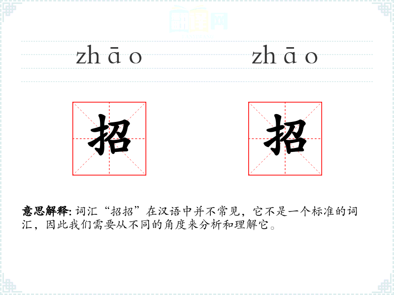 词汇“招招”在汉语中并不常见,它不是一个标准的词汇,因此我们需要从不同的角度来分析和理解它。