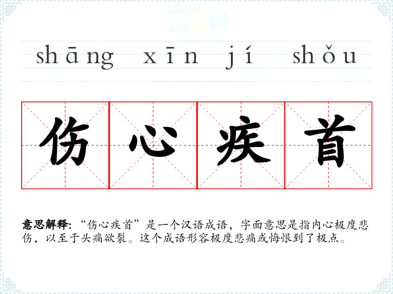 “伤心疾首”是一个汉语成语,字面意思是指内心极度悲伤,以至于头痛欲裂。这个成语形容极度悲痛或悔恨到了极点。