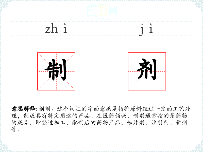 - 专业领域:在医药、化学、生物技术等专业领域,“制剂”是一个常用词汇,用于描述药物或化学品的制备过程和成品。