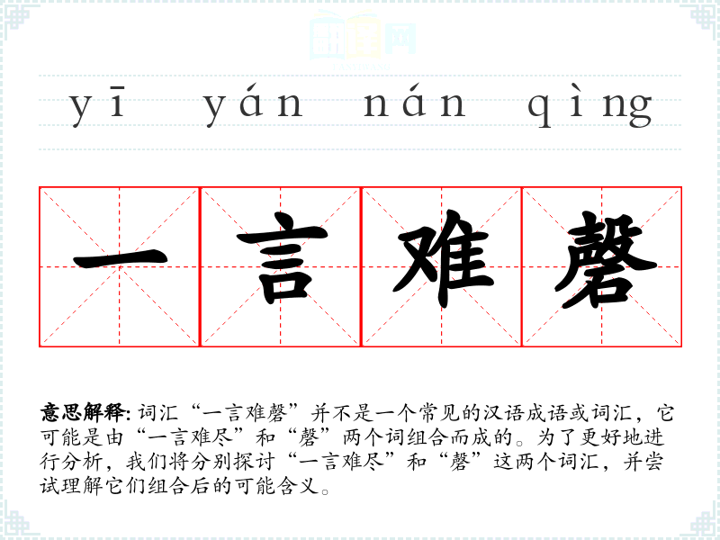 "一言难磬"的意思解释、一言难磬是什么意思由翻译网汉语词典查词提供。