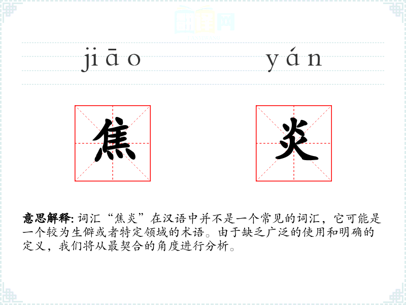 词汇“焦炎”在汉语中并不是一个常见的词汇,它可能是一个较为生僻或者特定领域的术语。由于缺乏广泛的使用和明确的定义,我们将从最契合的角度进行分析。