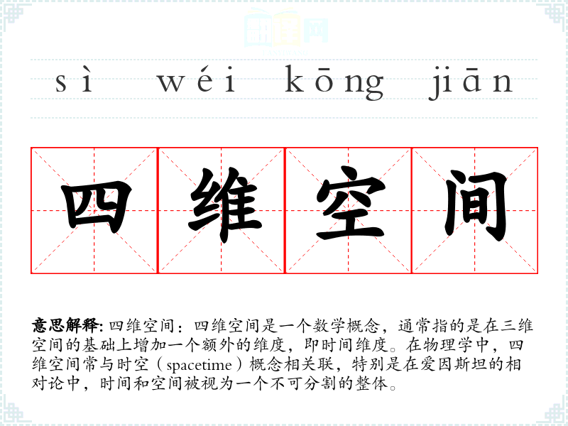 - 对应词汇:在不同语言中,如英语的“four-dimensional space”,德语的“vierdimensionaler Raum”,概念基本一致,但文化解读可能有所不同。