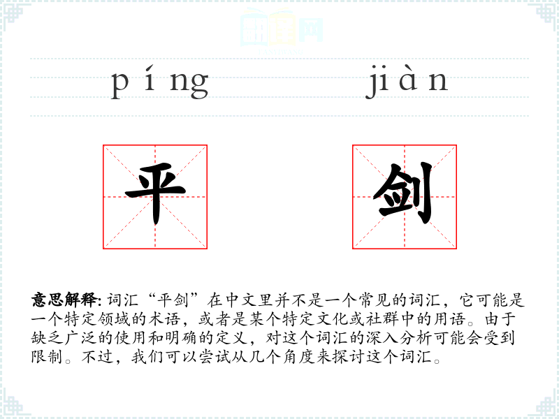 由于“平剑”不是一个常见的词汇,对其的理解和应用可能受到限制。在语言学习和表达中,了解特定领域的术语和文化背景是非常重要的,这有助于丰富个人的语言知识和文化素养。