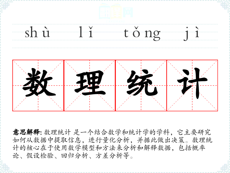 在不同语言中,数理统计的对应词汇可能有所不同,但其核心概念和应用领域通常是相似的。例如,在英语中,它被称为“Mathematical Statistics”。