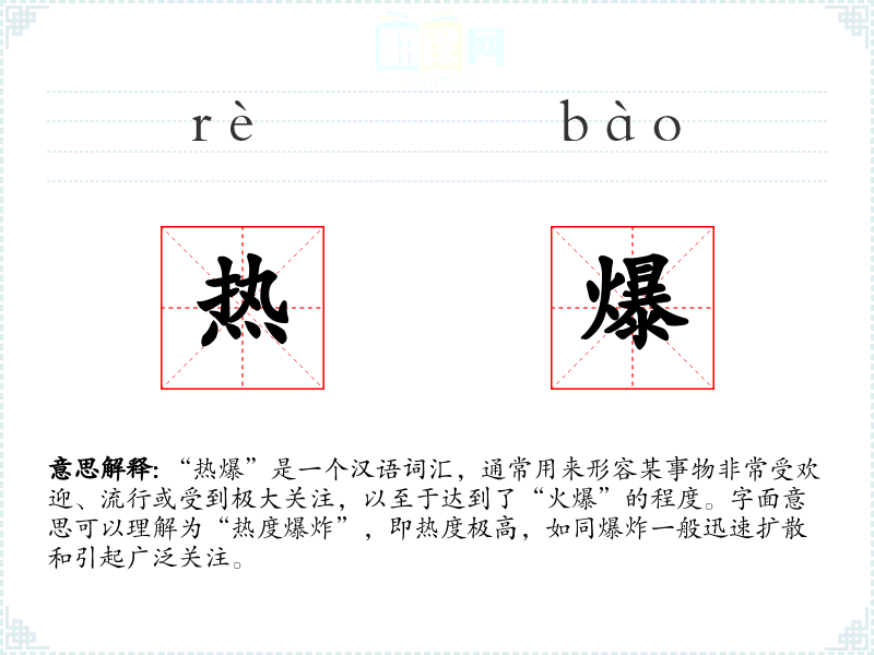 - 口语:在日常口语中,“热爆”常用于描述社交媒体上的热门话题、流行歌曲、电影等,表达其极高的关注度和流行度。