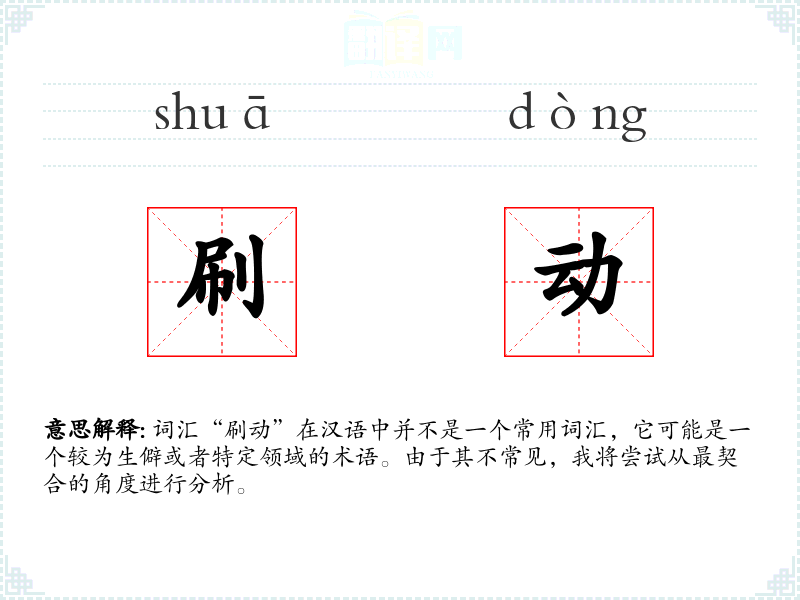 词汇“刷动”在汉语中并不是一个常用词汇,它可能是一个较为生僻或者特定领域的术语。由于其不常见,我将尝试从最契合的角度进行分析。