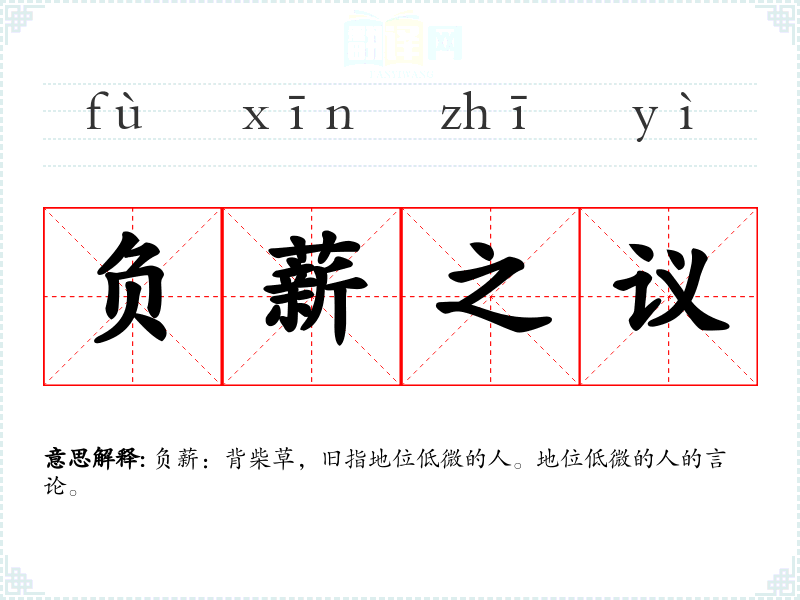 负薪:背柴草,旧指地位低微的人。地位低微的人的言论。