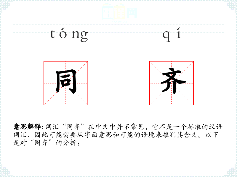 词汇“同齐”在中文中并不常见,它不是一个标准的汉语词汇,因此可能需要从字面意思和可能的语境来推测其含义。以下是对“同齐”的分析: