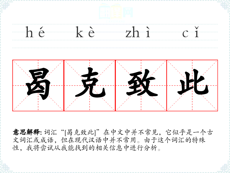 词汇“[曷克致此]”在中文中并不常见,它似乎是一个古文词汇或成语,但在现代汉语中并不常用。由于这个词汇的特殊性,我将尝试从我能找到的相关信息中进行分析。