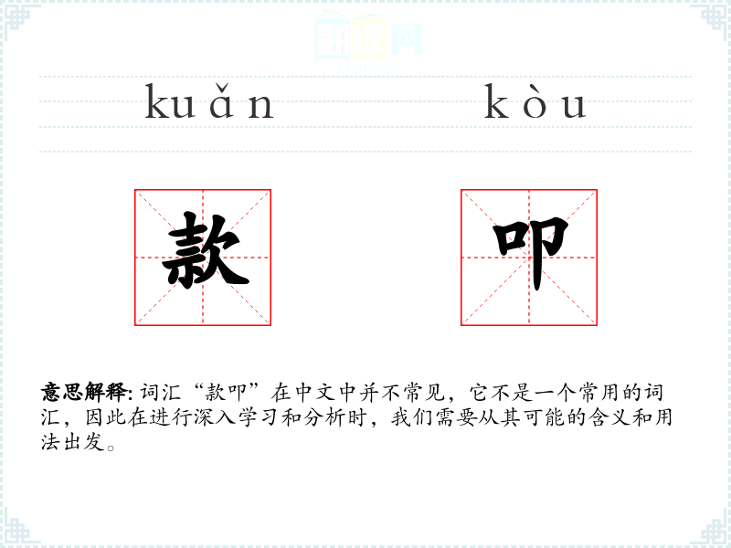 词汇“款叩”在中文中并不常见,它不是一个常用的词汇,因此在进行深入学习和分析时,我们需要从其可能的含义和用法出发。