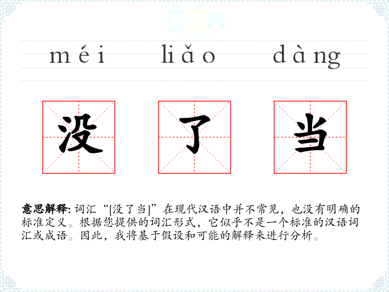由于“[没了当]”不是一个标准的汉语词汇,我们无法对其进行深入的分析和理解。在语言学习和表达中,遇到不明确的词汇时,最好的做法是查找可靠的词典或资源,以确保理解和使用的准确性。