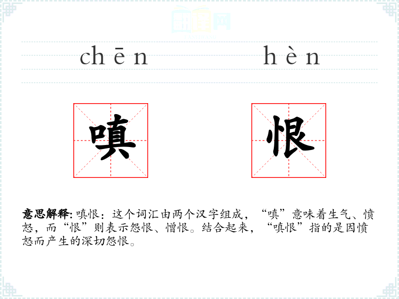 "嗔恨"的意思解释、嗔恨是什么意思由翻译网汉语词典查词提供。