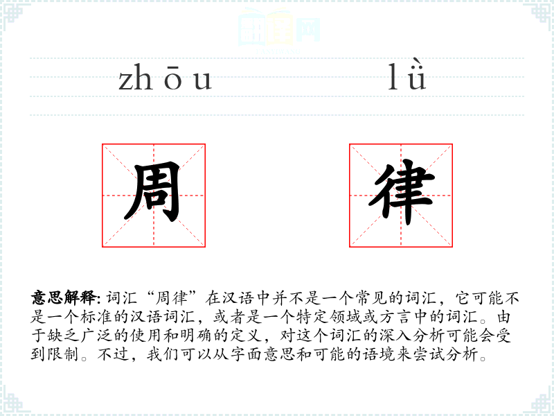 由于“周律”不是一个常见的词汇,它在不同语言或文化中的对应词汇及其使用情况可能不为人所知。