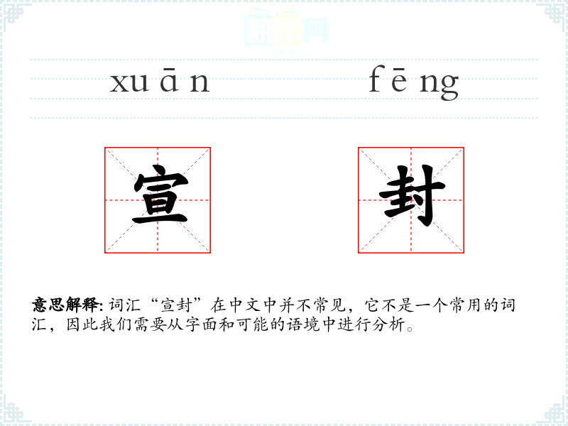 词汇“宣封”在中文中并不常见,它不是一个常用的词汇,因此我们需要从字面和可能的语境中进行分析。