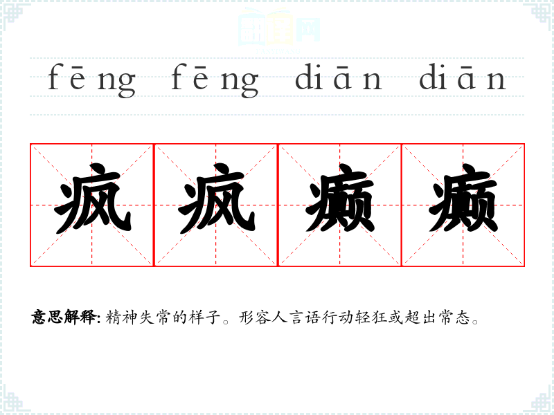 精神失常的样子。形容人言语行动轻狂或超出常态。