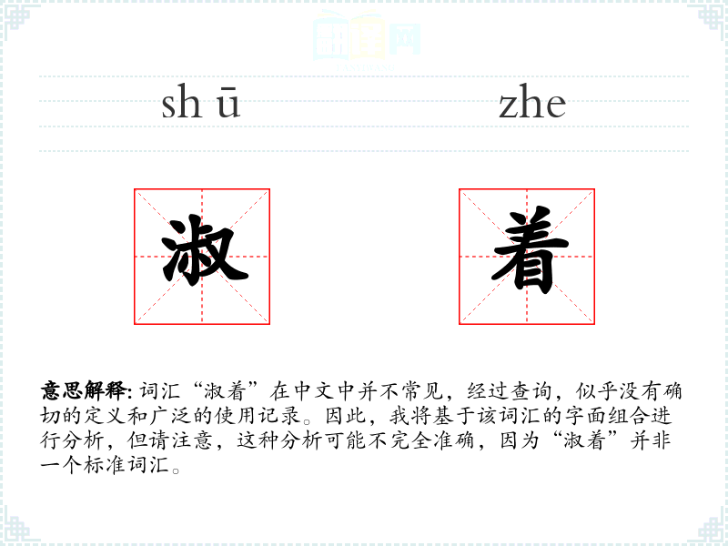 词汇“淑着”在中文中并不常见,经过查询,似乎没有确切的定义和广泛的使用记录。因此,我将基于该词汇的字面组合进行分析,但请注意,这种分析可能不完全准确,因为“淑着”并非一个标准词汇。