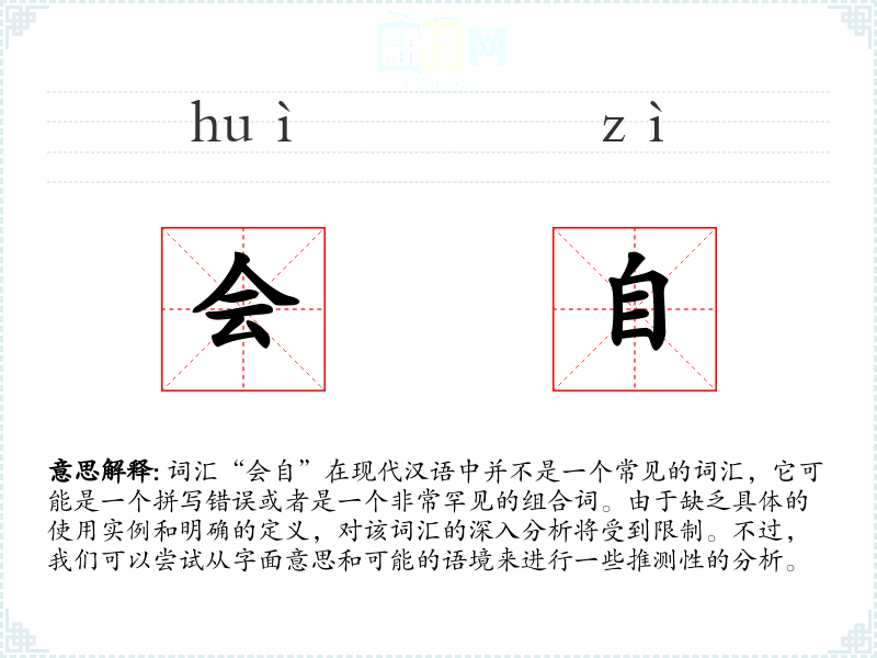 由于“会自”不是一个标准的汉语词汇,我们无法给出确切的基本定义。如果将其拆分为“会”和“自”两个字,我们可以分别解释: