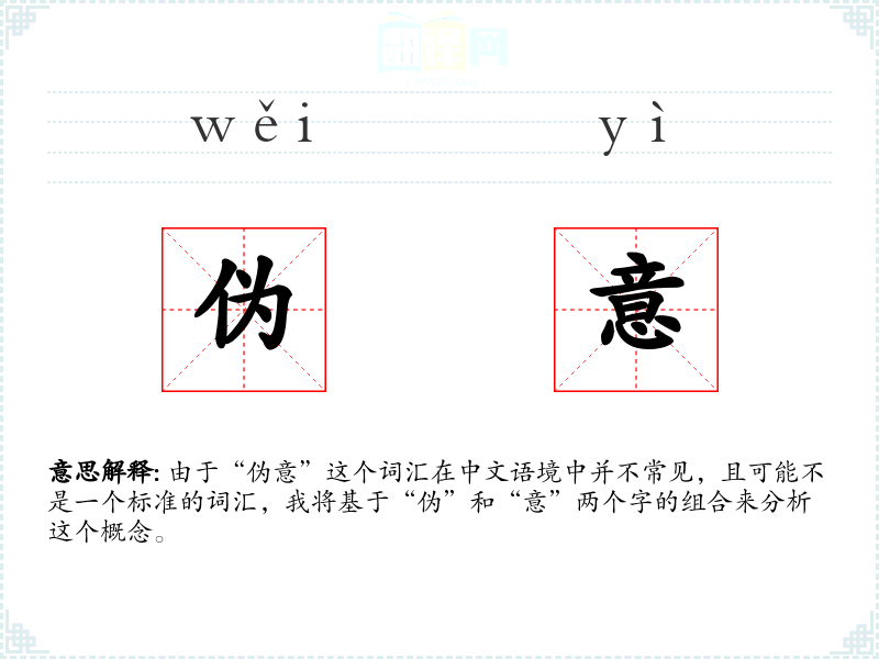 由于“伪意”这个词汇在中文语境中并不常见,且可能不是一个标准的词汇,我将基于“伪”和“意”两个字的组合来分析这个概念。