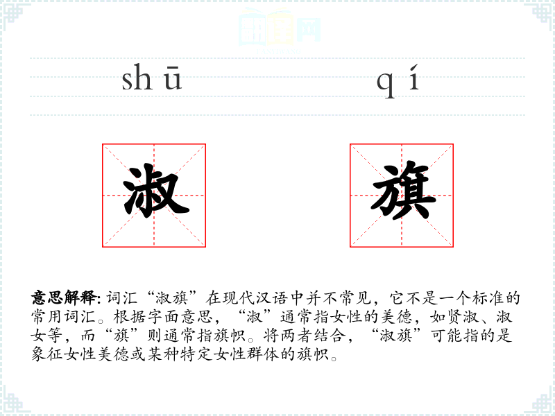 - 反义词:无明显反义词,因为“淑旗”不是一个常用词汇。