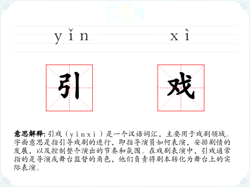 引戏一词源于**古代戏曲,最初指的是戏曲中的“引子”或“开场白”,后来逐渐演变为指导整个戏剧表演的角色。在现代汉语中,引戏更多地被理解为导演的职责,尤其是在戏剧和电影领域。
