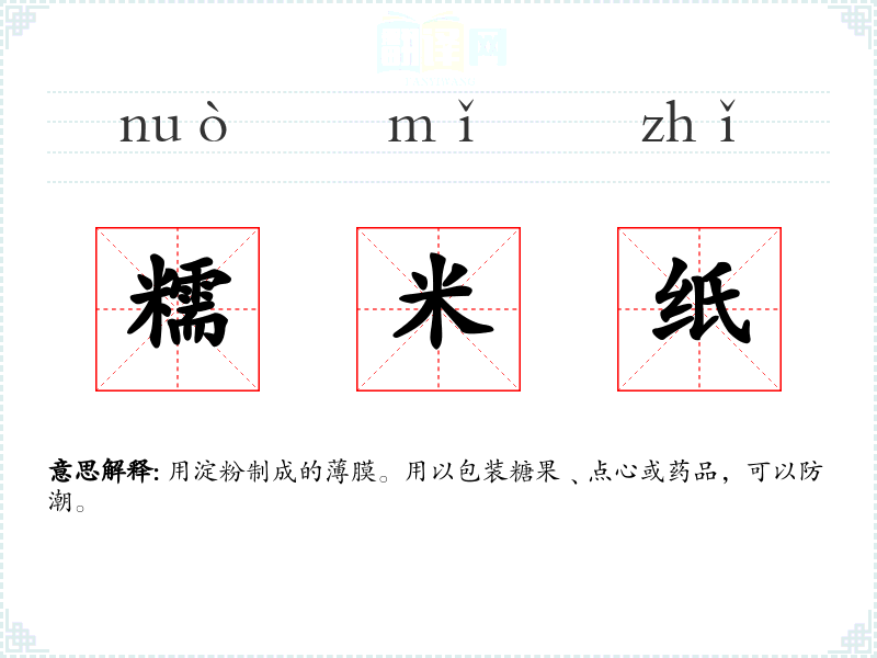 糯米纸的分字解释